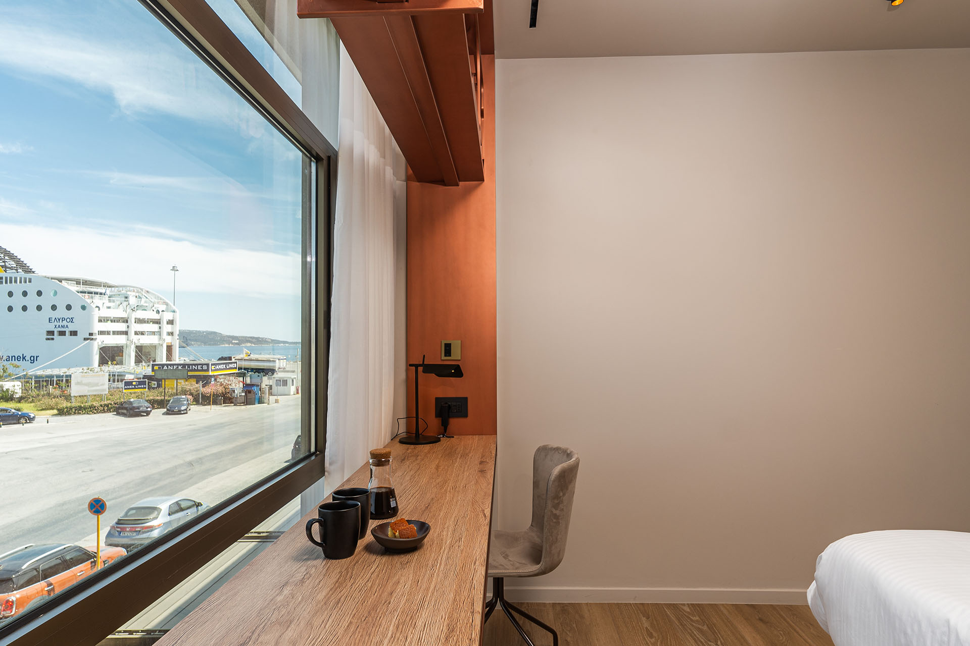 The junior suite is one of the newly built suites of our hotel, with an area of 38 sqm. It ensures stunning sea views, a separate bedroom, fully equipped kitchen, dining table, bathroom, and living room with a smart TV, satellite channels, and Playstation 5.